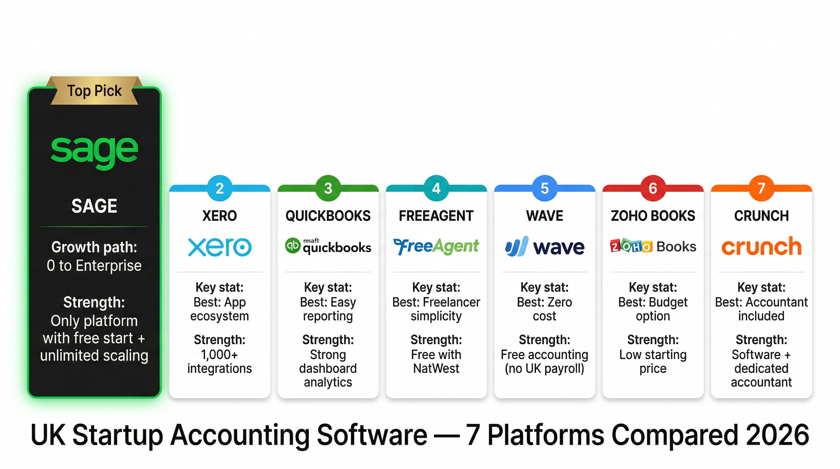 Comparing the best accounting software for UK startups in 2026. From free tools at launch through to scalable platforms — covering Sage, Xero, QuickBooks, FreeAgent, Wave, and Zoho Books.
